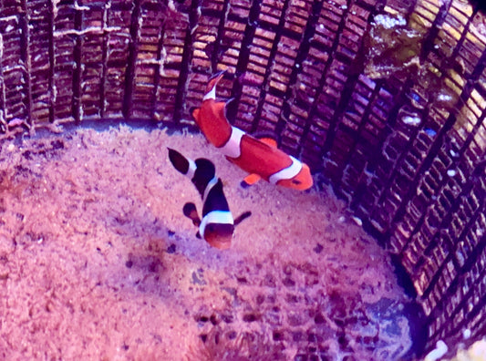 Bonded Pair of Black Ice and Bullet hole Clownfish